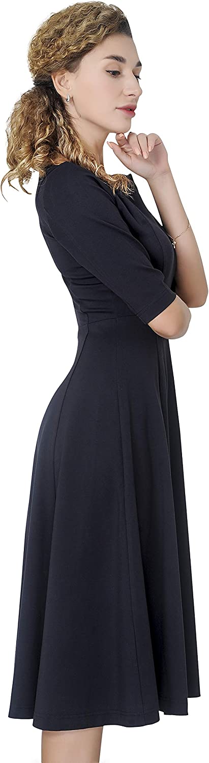 Marycrafts Women's Slim Fit and Flare Tea Midi Dress for Office Business Work