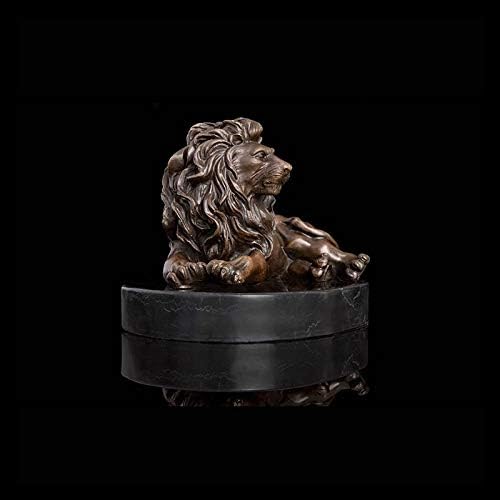 MJWDP Bronze Sculpture Reclining Lion Statue Antique Wildlife Metal Art Home Decor